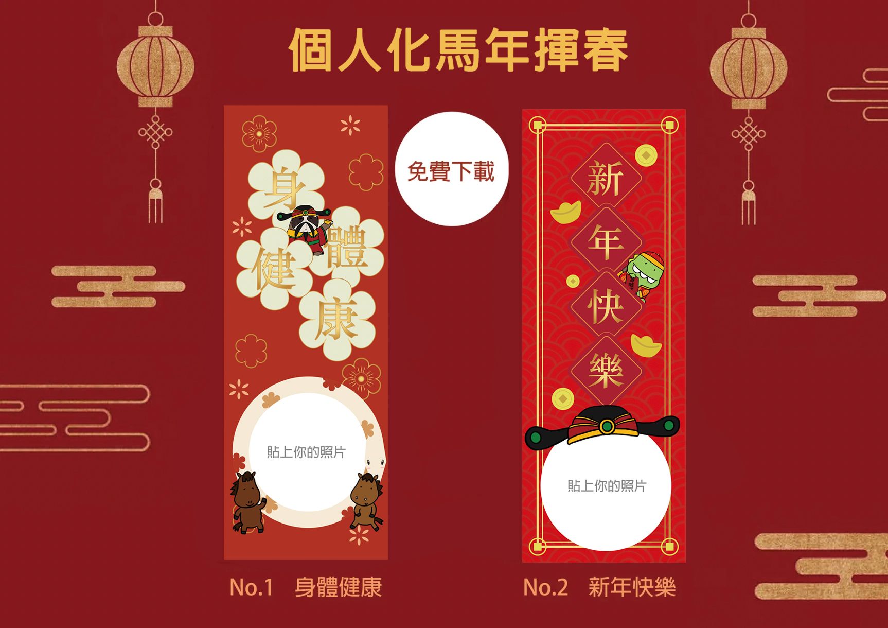 揮春作為新年的傳統裝飾,不僅能增添節日氣氛,還能帶來祝福和好運。我哋特地為大家準備咗兩款免費下載的揮春,透過加入照片,便能夠創造獨一無二的作品,為家中增添一份新春的喜慶。快啲嚟試吓啦!